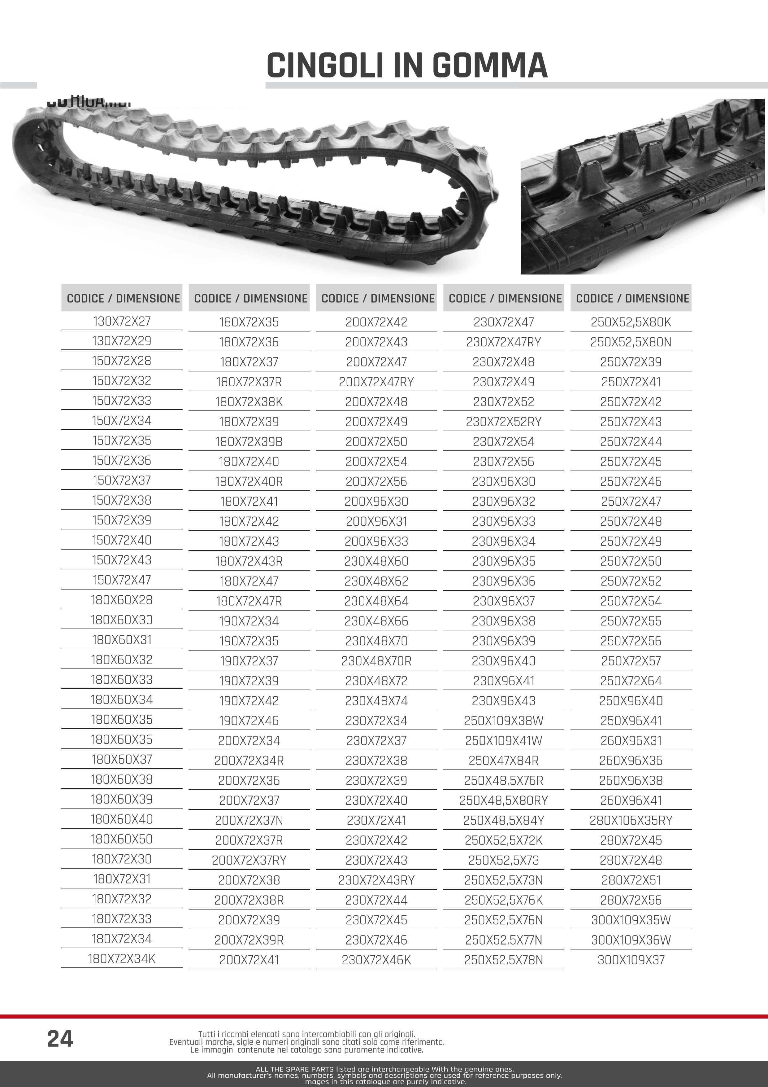 cingoli in gomma per escavatori